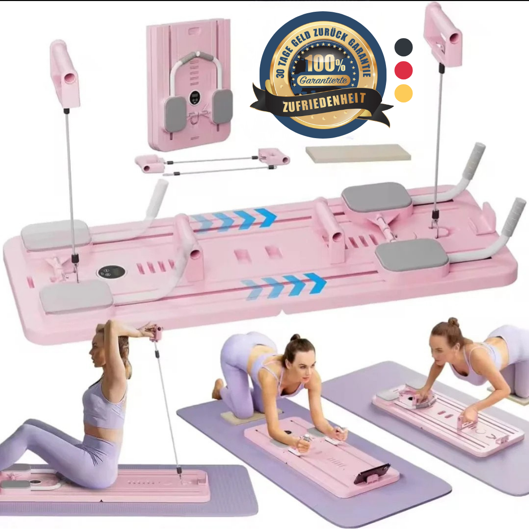 Pilates-Studio direkt nach Hause. Die Unterarme liegen stabil und gelenkschonend auf, während du durch verschiedene Positionen die Intensität ganz einfach an dein Fitnesslevel anpassen kannst – ideal für Bauch, Rücken und gesamte Rumpfmuskulatur.